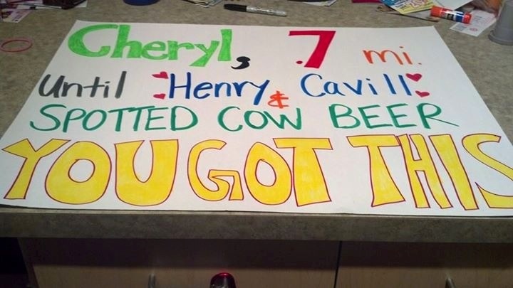However, to make up for it, my good friend Erin was still out on the course cheering me on and she had the best sign waiting for me. Most people (or at least those who pay any attention to anything I do) know that I really dig Henry Cavill and Spotted Cow beer is quite tasty. The last time I had one was in May of this year when I ran the Green Bay Half Marathon. I even saved one so I could enjoy it post marathon since I was off the booze while training. She said several runners were jealous and she told them they could have the Spotted Cow, but that Henry was mine.