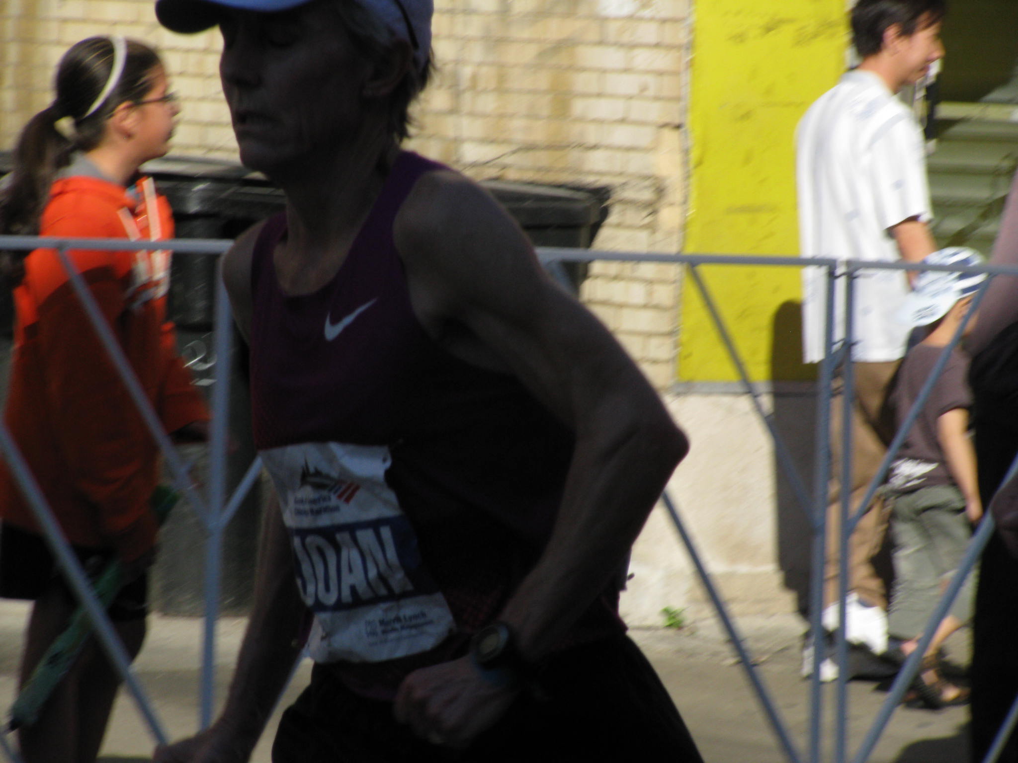 As I have done in past years, I went to Chinatown to watch the race.  This year, I was actually up early enough that when I arrived at the welcome gate in Chinatown, the only people around were those who were local to the neighborhood and people who were helping to set up for the events.  I really wanted to arrive early because I wanted to see the elite runners, both men and women.  This year’s elite field consisted of some of the best in the world as well as Sammy Wanjiru and Liliya Shobukhova, who were the winners last year.  Shobukhova set a new Russian record today with her time.  Ryan Hall, who was going to run the race pulled out early due to basically being over trained and his training getting progressively worse before the race.  I was sad to see him have to pull out of the race because he is one of the new crop of elite American men who has a very serious shot at winning some of the marathon races instead of it always being a Kenyan to take the title.  It was super cool to see Joan Benoit Samuelson running as well.  She is 53 and was trying to qualify for the olympic trials.  She JUST missed the time, but in the process set a new American record for the 50-54 age group.  Not gonna lie — if I could run that fast now, I would be so excited.  And when I am her age, I’d probably kill to run that fast.  She looked amazing when I saw her run past me in Chinatown.  For complete coverage of the race with all the various stories, such as the fantastic showing by American Women, the stories of Wanjiru and Shobukhova, the 2:11 time of the first American male, etc., check out runner’s world’s coverage as it helped keep me informed while I was on the sidewalk watching and cheering on the runners.